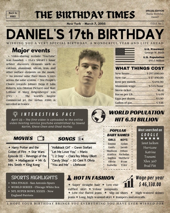 17th Birthday Gift Ideas For Boy Or Girl Back In 2005 Poster Etsy Canada